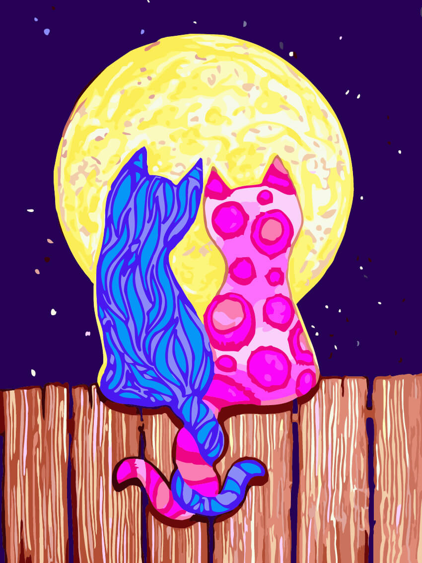 Набор для рисования картины по номерам Котики под луной, арт. AS0218, 30х40см. ***НАЛИЧИЕ УТОЧНЯЙТЕ***