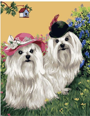 Набор для рисования картины по номерам Белые болонки, арт. BK-GX25470, 40х50см. ***НАЛИЧИЕ УТОЧНЯЙТЕ***