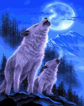 Набор для рисования картины по номерам Волки под луной, арт. BK-GX21637, 40х50см. ***НАЛИЧИЕ УТОЧНЯЙТЕ***