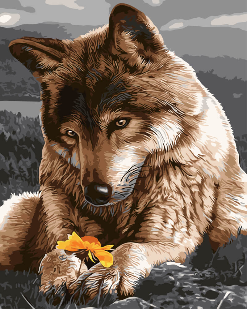 Набор для рисования картины по номерам Волк с цветком, арт. BK-GX9713, 40х50см. ***НАЛИЧИЕ УТОЧНЯЙТЕ***