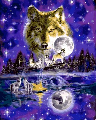 Набор для рисования картины по номерам Волчья луна, арт. VP623, 40х50см. ***НАЛИЧИЕ УТОЧНЯЙТЕ***