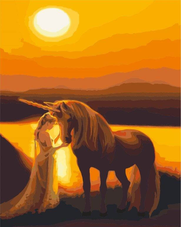 Набор для рисования картины по номерам Дева и единорог, арт. KHO4020, 40х50см. ***НАЛИЧИЕ УТОЧНЯЙТЕ***