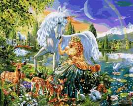 Набор для рисования картины по номерам Дева и единорог, арт. VP1092, 40х50см. ***НАЛИЧИЕ УТОЧНЯЙТЕ***