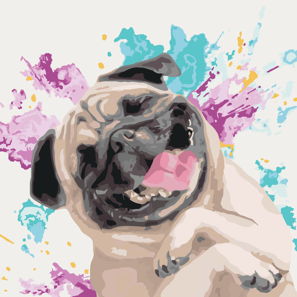 Набор для рисования картины по номерам Довольный мопс, арт. KH4066, 40х40см. ***НАЛИЧИЕ УТОЧНЯЙТЕ***