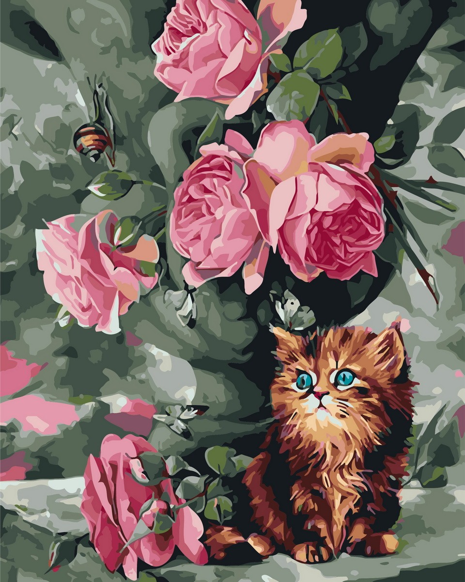 Набор для рисования картины по номерам Котенок и розы, арт. BK-GX3574, 40х50см. ***НАЛИЧИЕ УТОЧНЯЙТЕ***