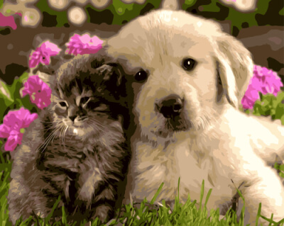 Набор для рисования картины по номерам Котенок и щенок лабрадора, арт. BK-GX8799, 40х50см. ***НАЛИЧИЕ УТОЧНЯЙТЕ***
