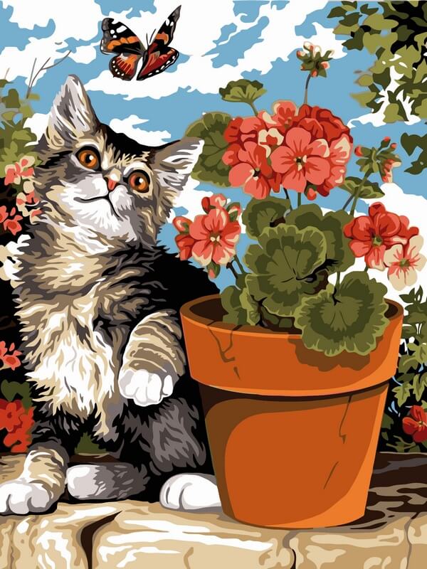 Набор для рисования картины по номерам Котенок с геранью, арт. VK119, 30х40см. ***НАЛИЧИЕ УТОЧНЯЙТЕ***