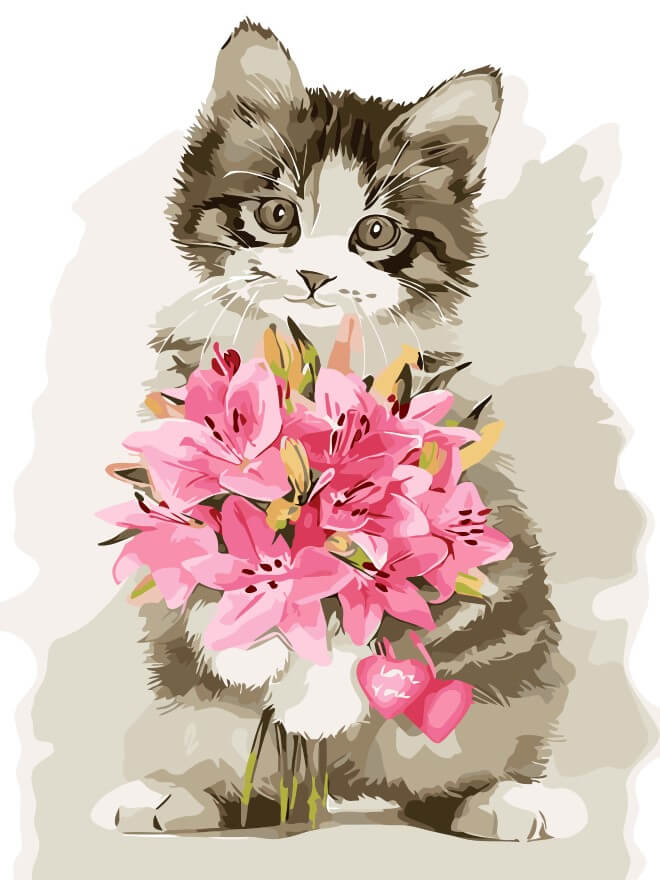 Набор для рисования картины по номерам Котенок с розовым букетом, арт. AS0310, 30х40см. ***НАЛИЧИЕ УТОЧНЯЙТЕ***