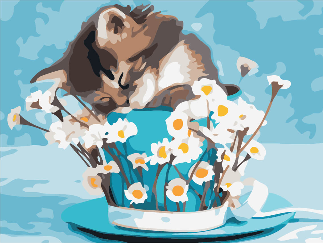 Набор для рисования картины по номерам Котенок с ромашками, арт. AS0471, 30х40см. ***НАЛИЧИЕ УТОЧНЯЙТЕ***
