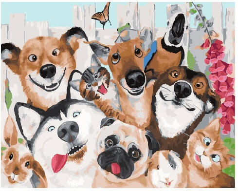 Набор для рисования картины по номерам Котики и песики Селфи, арт. BK-GX25318, 40х50см. ***НАЛИЧИЕ УТОЧНЯЙТЕ***