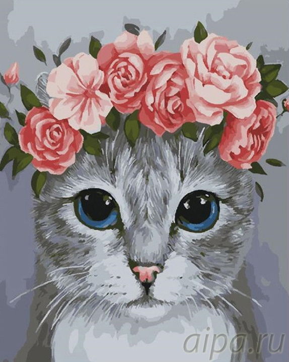 Набор для рисования картины по номерам Котик в веночке, арт. BRM28567, 40х50см. ***НАЛИЧИЕ УТОЧНЯЙТЕ***
