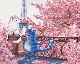 Набор для рисования картины по номерам Коты в Париже, арт. KHO4047, 40х50см. ***НАЛИЧИЕ УТОЧНЯЙТЕ***