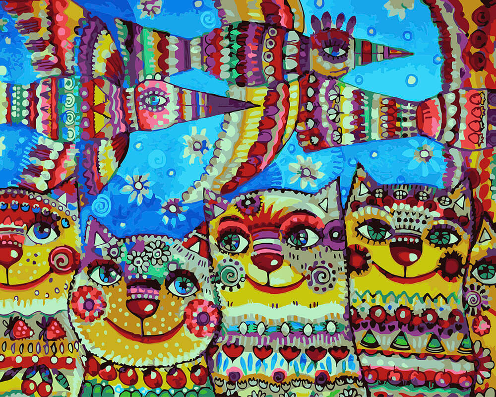 Набор для рисования Коты и птицы, арт. BK-GX23439 (БК-GX) содержит: прогрунтованный холст на подрамнике с нанесенной номерной схемой, акриловые краски, кисти, крепеж на стену и инструкцию с фото. Без коробки. Размер 40х50см.