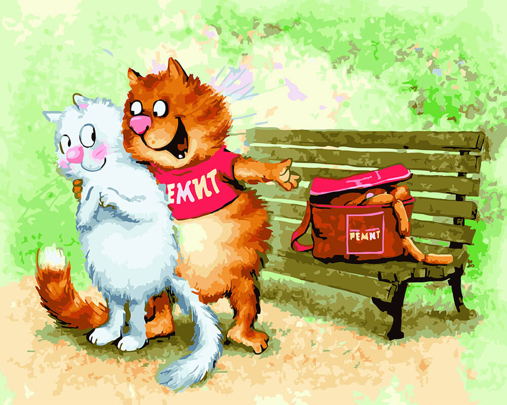Набор для рисования картины по номерам Коты у лавочки, арт. BK-GX22657, 40х50см. ***НАЛИЧИЕ УТОЧНЯЙТЕ***