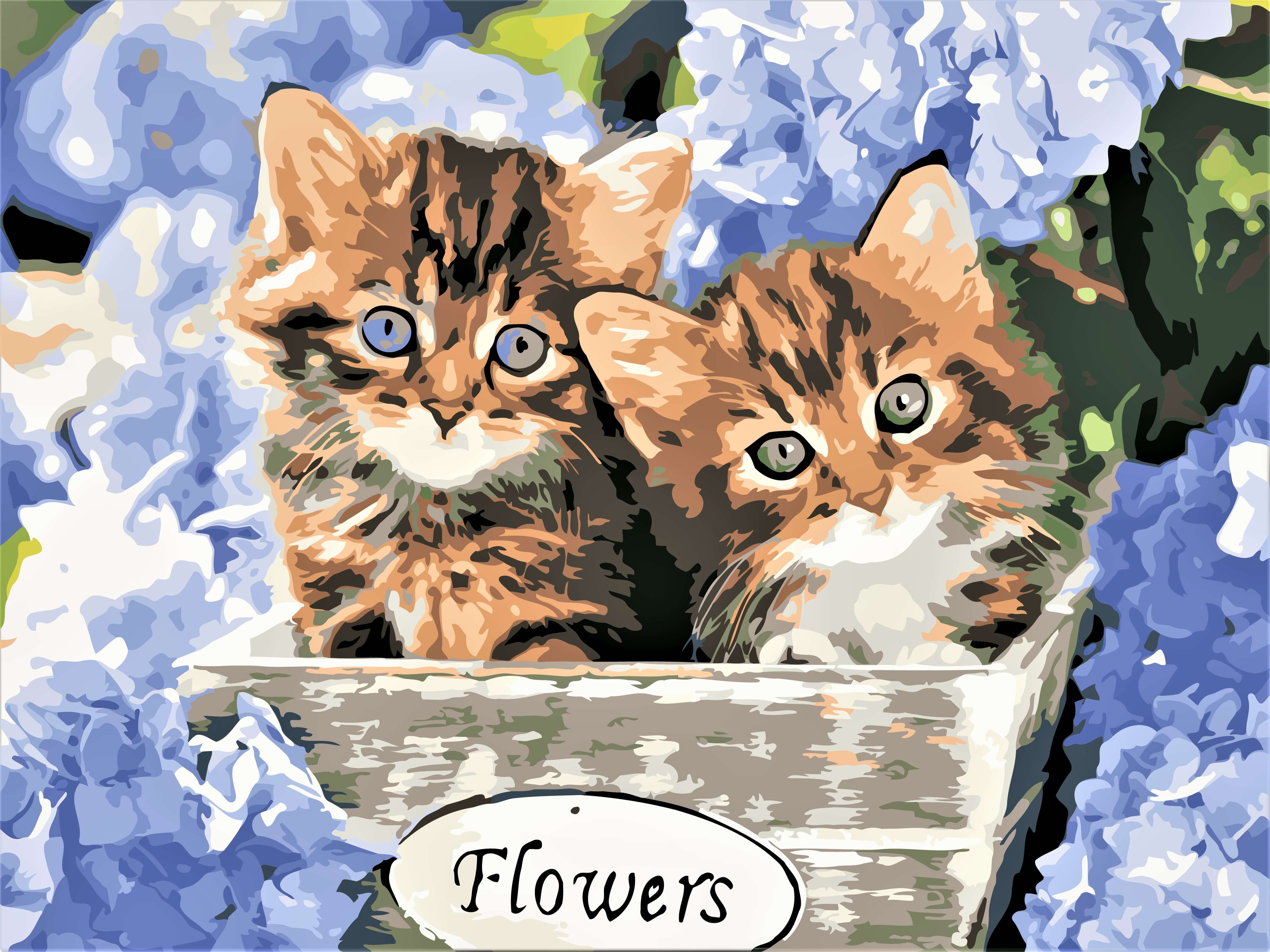Набор для рисования картины по номерам Котята в цветах, арт. AS0597, 30х40см. ***НАЛИЧИЕ УТОЧНЯЙТЕ***