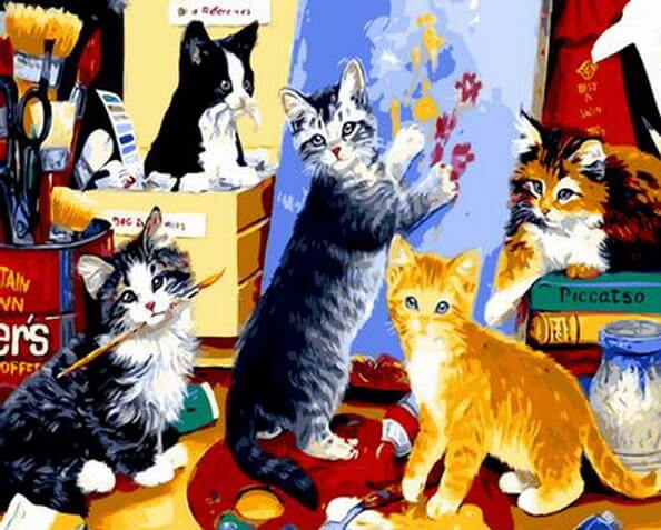 Набор для рисования картины по номерам Котята художники, арт. MR-Q885, 40х50см. ***НАЛИЧИЕ УТОЧНЯЙТЕ***