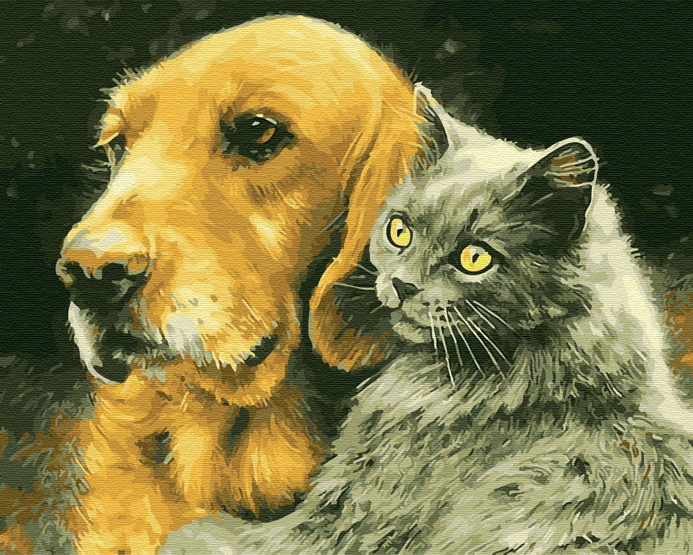 Набор для рисования картины по номерам Кот и пес, арт. BK-GX28848, 40х50см. ***НАЛИЧИЕ УТОЧНЯЙТЕ***