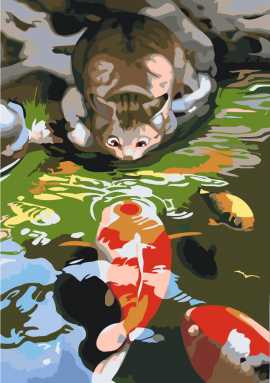 Набор для рисования картины по номерам Кот на берегу пруда с карпами, арт. KHO2437, 30х40см. ***НАЛИЧИЕ УТОЧНЯЙТЕ***