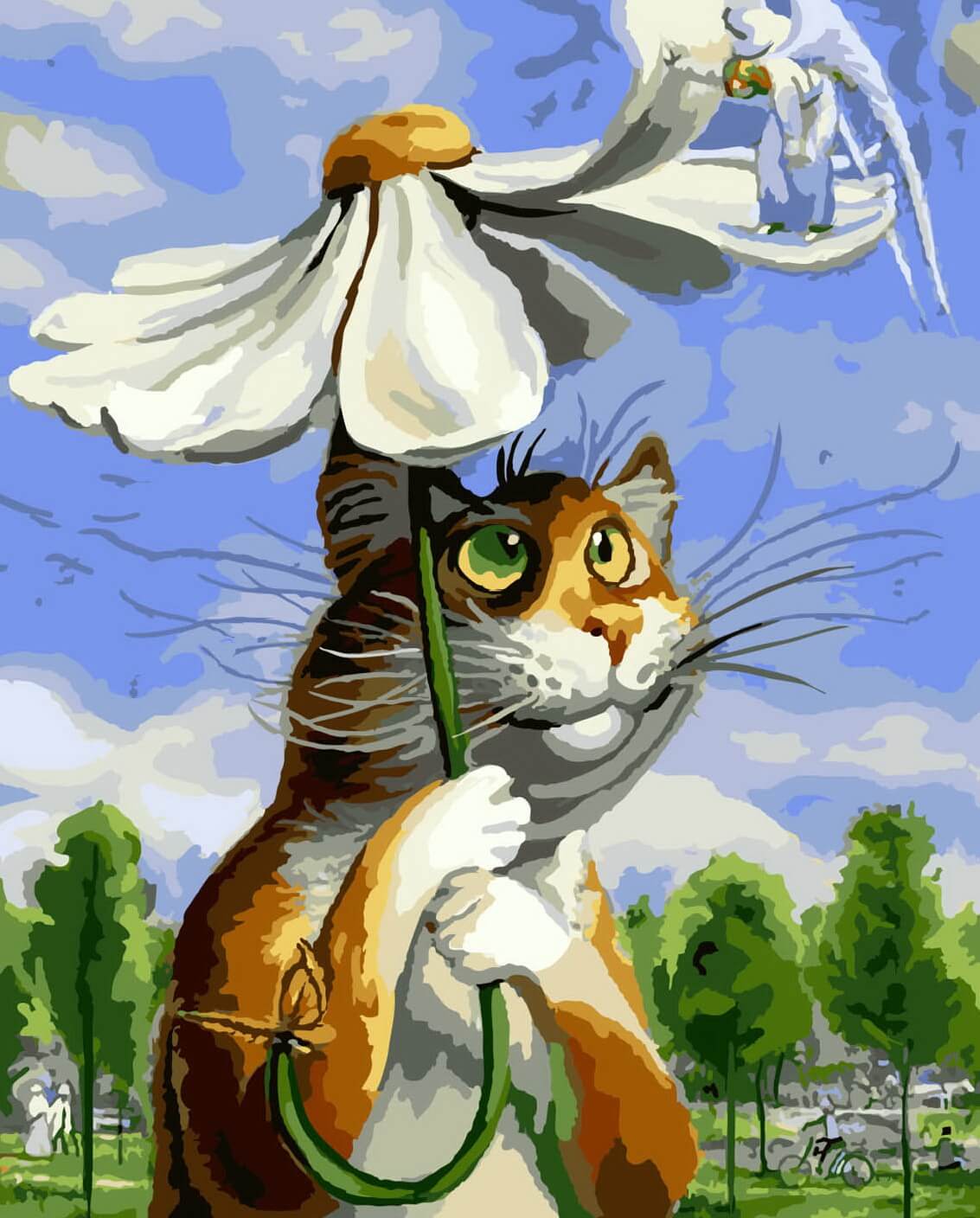 Набор для рисования картины по номерам Кот с ромашкой, арт. BK-GX8338, 40х50см. ***НАЛИЧИЕ УТОЧНЯЙТЕ***