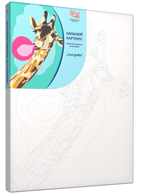 Набор для рисования по номерам Крутой жираф, арт. RS-N0001363 (Роса) содержит: прогрунтованный холст на подрамнике с нанесенной номерной схемой, акриловые краски, кисти, крепеж на стену и инструкцию с фото. Без коробки. Размер 35х45см.