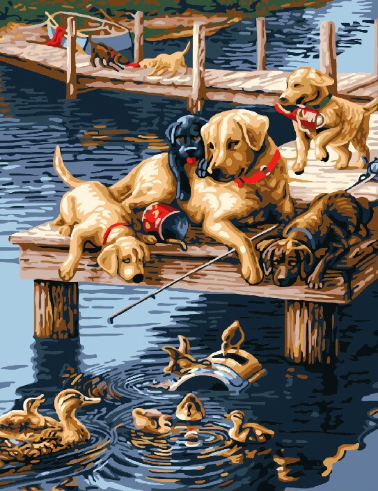 Набор для рисования картины по номерам Лабрадоры на пристани, арт. BK-GX7092, 40х50см. ***НАЛИЧИЕ УТОЧНЯЙТЕ***