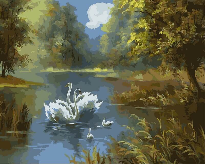 Набор для рисования картины по номерам Лебединое семейство, арт. VP391, 40х50см. ***НАЛИЧИЕ УТОЧНЯЙТЕ***