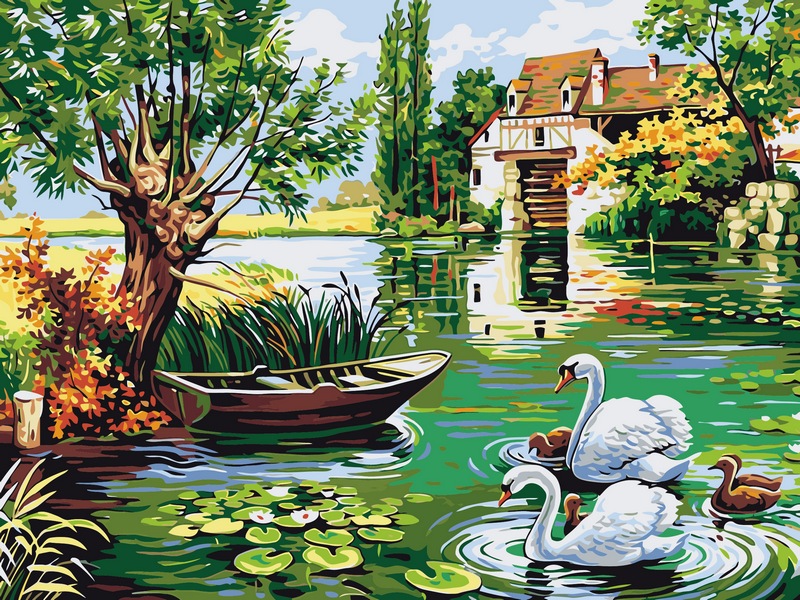 Набор для рисования картины по номерам Лебединое семейство, арт. VK130, 30х40см. ***НАЛИЧИЕ УТОЧНЯЙТЕ***