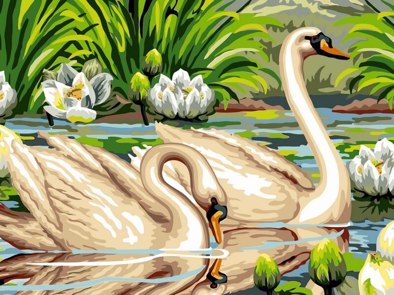 Набор для рисования картины по номерам Лебеди и лотосы, арт. VK129, 30х40см. ***НАЛИЧИЕ УТОЧНЯЙТЕ***