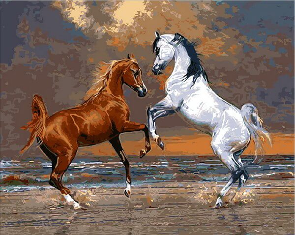 Набор для рисования Лошади на берегу океана, арт. MR-Q2083 (Mariposa) содержит: прогрунтованный холст на подрамнике с нанесенной номерной схемой, акриловые краски, кисти, крепеж на стену и инструкцию с фото. В коробке. Размер 40х50см.