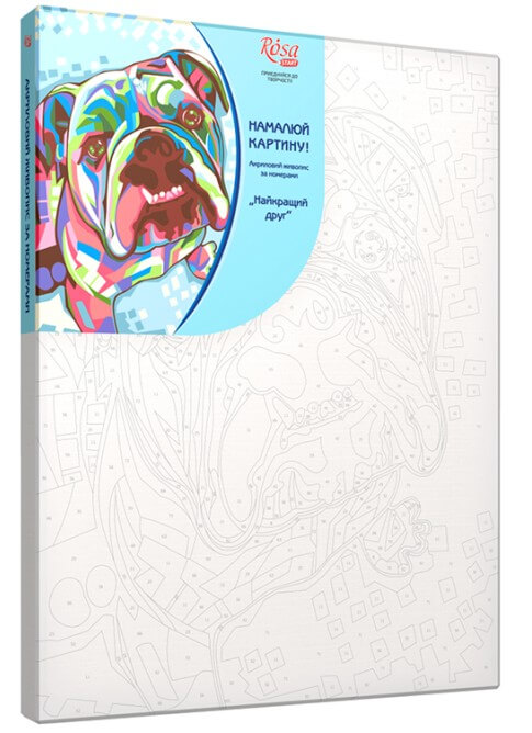 Набор для рисования по номерам Лучший друг, арт. RS-N0001366 (Роса) содержит: прогрунтованный холст на подрамнике с нанесенной номерной схемой, акриловые краски, кисти, крепеж на стену и инструкцию с фото. Без коробки. Размер 35х45см.