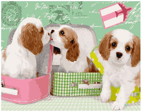 Набор для рисования картины по номерам Милые щеночки в чемоданах, арт. BK-GX25358, 40х50см. ***НАЛИЧИЕ УТОЧНЯЙТЕ***