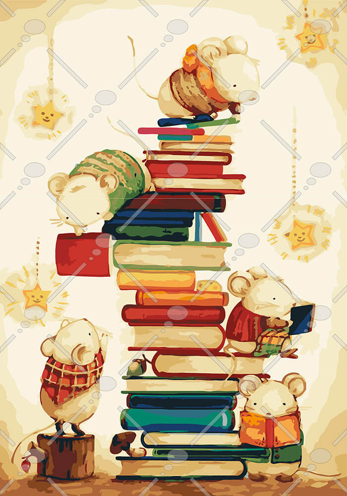 Набор для рисования картины по номерам Мышки в библиотеке, арт. KHO4111, 35х50см. ***НАЛИЧИЕ УТОЧНЯЙТЕ***