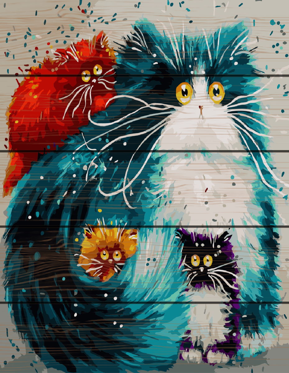 Набор для рисования картины по номерам на дереве Цветные коты, арт. RA-GXT3805, 40х50см. ***НАЛИЧИЕ УТОЧНЯЙТЕ***