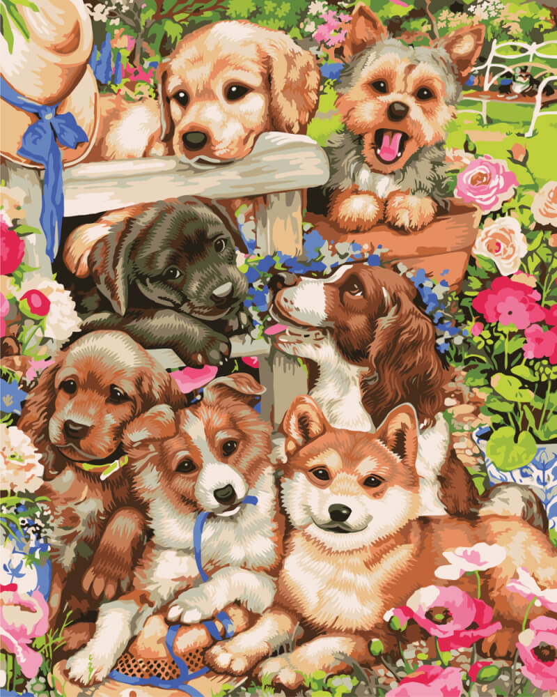 Набор для рисования картины по номерам Озорные щенки, арт. BK-GX8728, 40х50см. ***НАЛИЧИЕ УТОЧНЯЙТЕ***