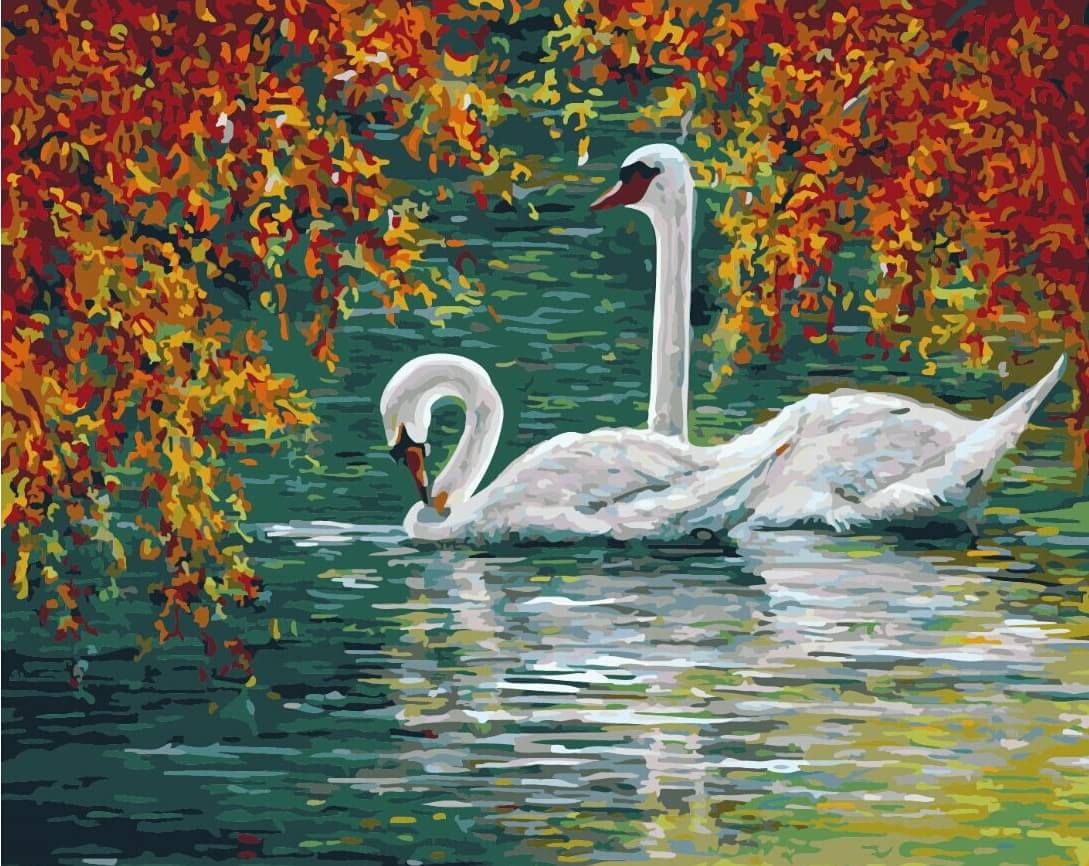 Набор для рисования картины по номерам Осенний пруд с лебедями, арт. BK-GX7039, 40х50см. ***НАЛИЧИЕ УТОЧНЯЙТЕ***