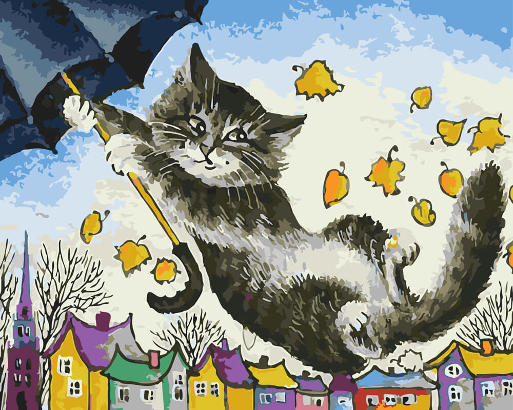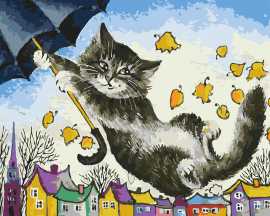 Набор для рисования Полет на зонтике, арт. BK-GX22195 (Rainbow Art) содержит: прогрунтованный холст на подрамнике с нанесенной номерной схемой, акриловые краски, кисти, крепеж на стену и инструкцию с фото. Размер 40х50см.