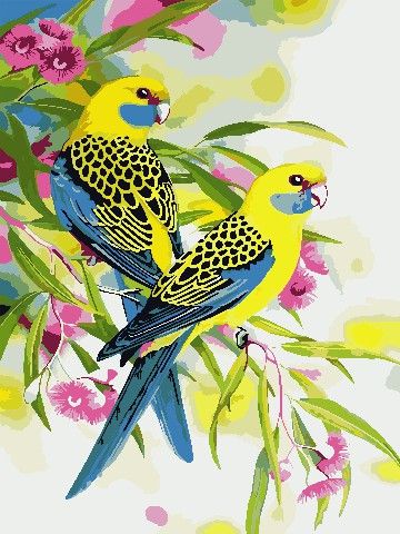 Набор для рисования картины по номерам Попугаи на ветке, арт. AS0783, 30х40см. ***НАЛИЧИЕ УТОЧНЯЙТЕ***