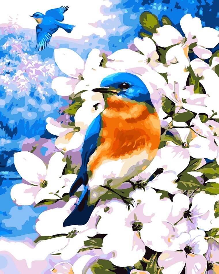 Набор для рисования картины по номерам Птичка на яблоневой ветке, арт. AS0052, 40х50см. ***НАЛИЧИЕ УТОЧНЯЙТЕ***
