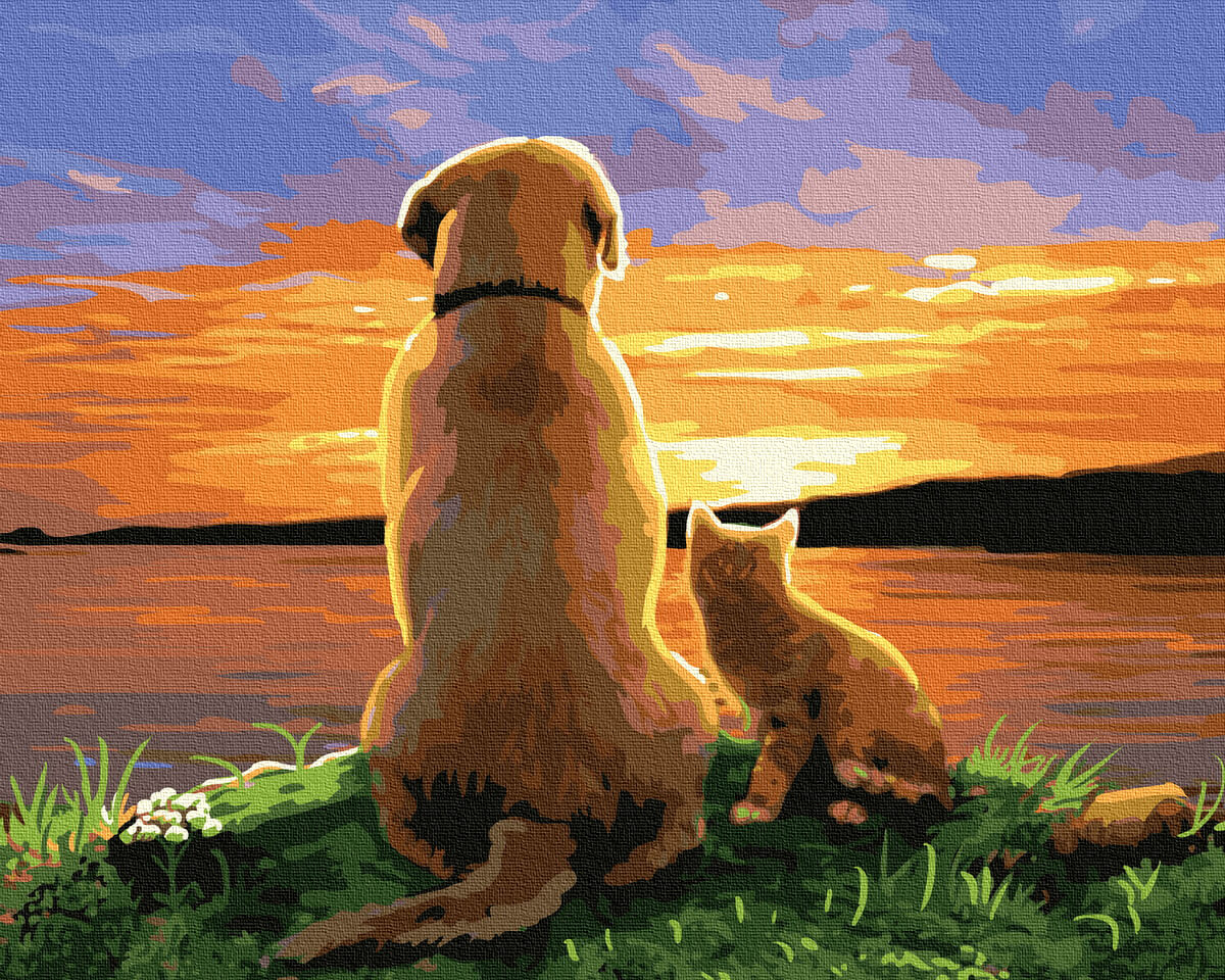 Набор для рисования картины по номерам Пёс с котенком на закате, арт. BK-GX34574, 40х50см. ***НАЛИЧИЕ УТОЧНЯЙТЕ***