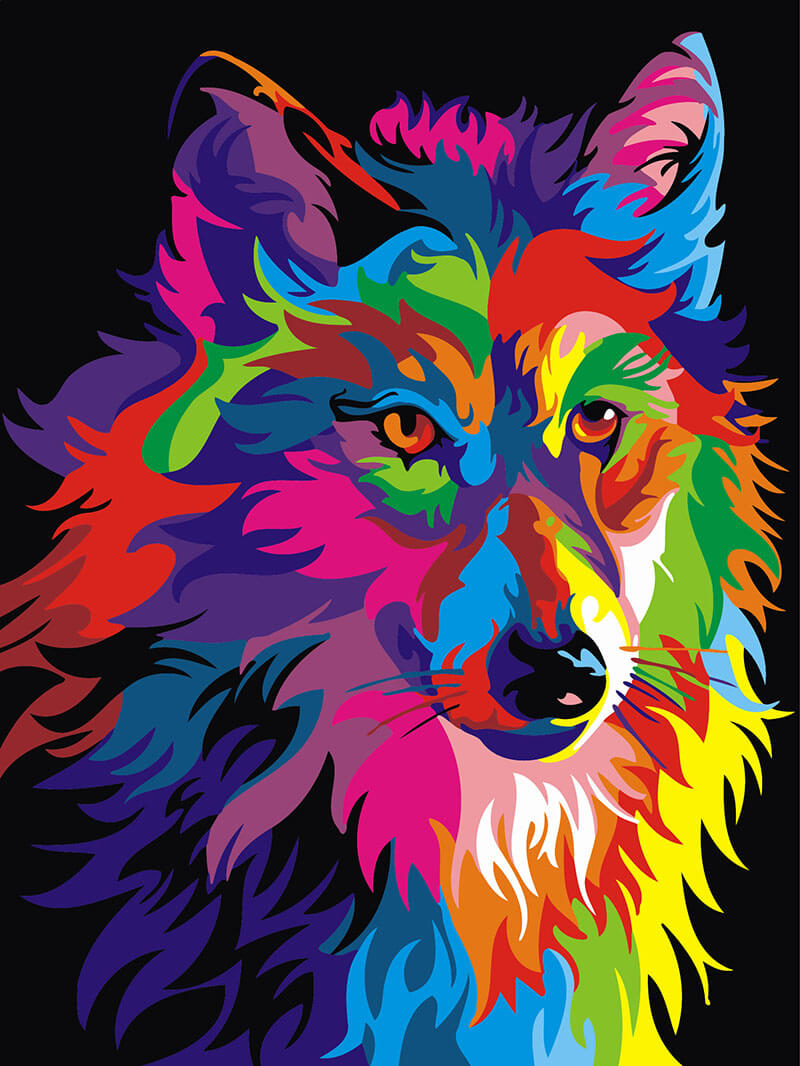 Набор для рисования картины по номерам Радужный волк, арт. BRM5252, 40х50см. ***НАЛИЧИЕ УТОЧНЯЙТЕ***