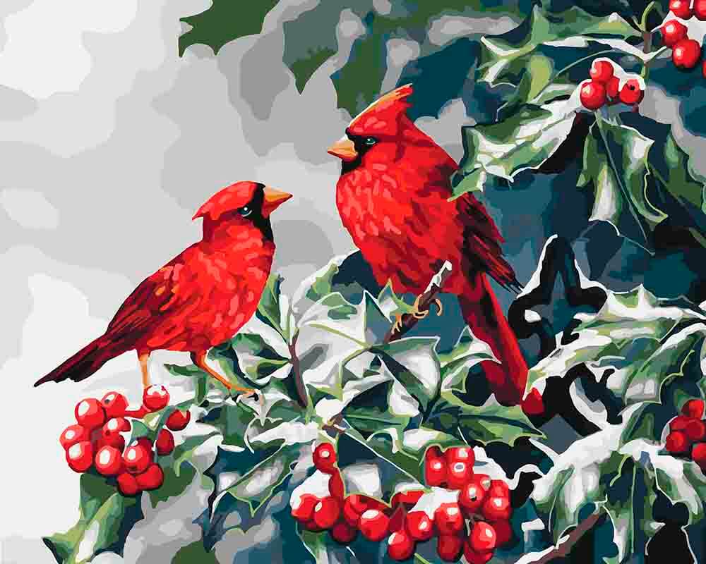 Набор для рисования картины по номерам Рождественские птички, арт. KHO4087, 40х50см. ***НАЛИЧИЕ УТОЧНЯЙТЕ***