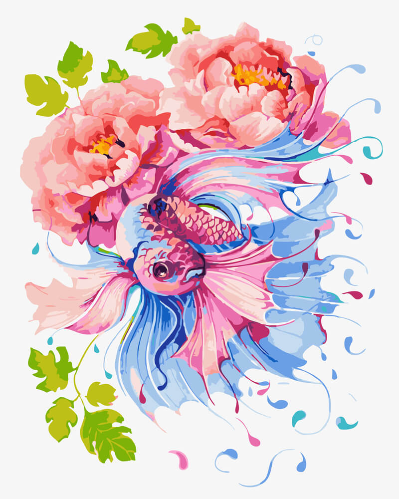 Набор для рисования картины по номерам Рыбка и пионы, арт. BK-GX23784, 40х50см. ***НАЛИЧИЕ УТОЧНЯЙТЕ***