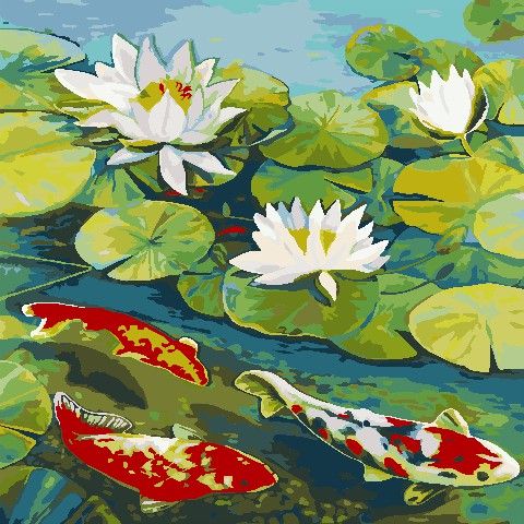 Набор для рисования картины по номерам Рыбки в пруду, арт. AS0807, 40х40см. ***НАЛИЧИЕ УТОЧНЯЙТЕ***