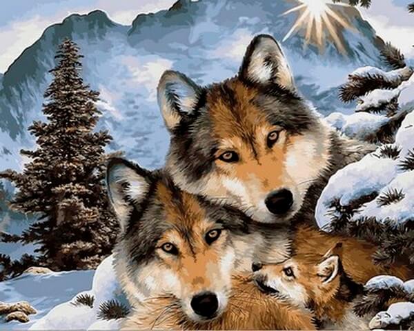 Набор для рисования картины по номерам Семья волков, арт. VPS1023, 50х65см. ***НАЛИЧИЕ УТОЧНЯЙТЕ***