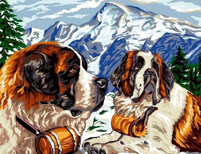 Набор для рисования Сенбернары в горах, арт. BK-GEX6111 (Brushme) содержит: прогрунтованный холст на подрамнике с нанесенной номерной схемой, акриловые краски, кисти, крепеж на стену и инструкцию с фото. Размер 40х50см.