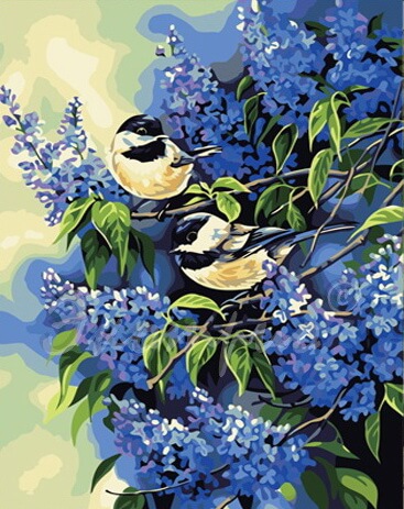 Набор для рисования картины по номерам Синички в сирени, арт. KHO216, 40х50см. ***НАЛИЧИЕ УТОЧНЯЙТЕ***
