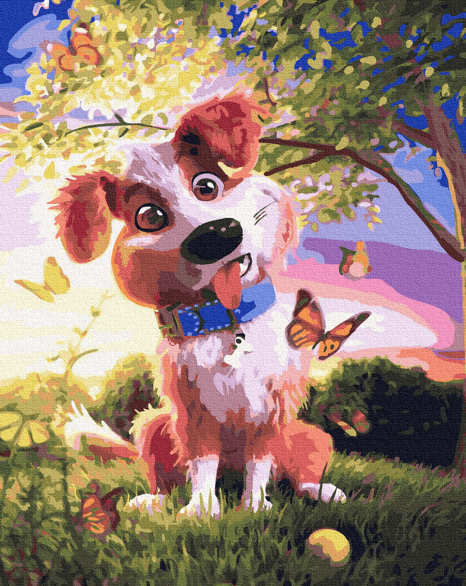 Набор для рисования картины по номерам Собака и бабочки, арт. BK-GX32583, 40х50см. ***НАЛИЧИЕ УТОЧНЯЙТЕ***