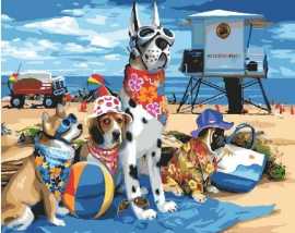 Набор для рисования картины по номерам Собаки на пляже, арт. BK-GX3255, 40х50см. ***НАЛИЧИЕ УТОЧНЯЙТЕ***