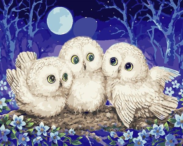 Набор для рисования картины по номерам Совята, арт. AS0725, 40х50см. ***НАЛИЧИЕ УТОЧНЯЙТЕ***