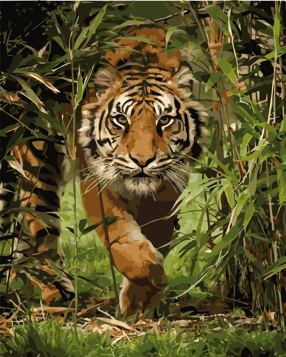 Набор для рисования картины по номерам Тигр на охоте, арт. KHO4043, 40х50см. ***НАЛИЧИЕ УТОЧНЯЙТЕ***